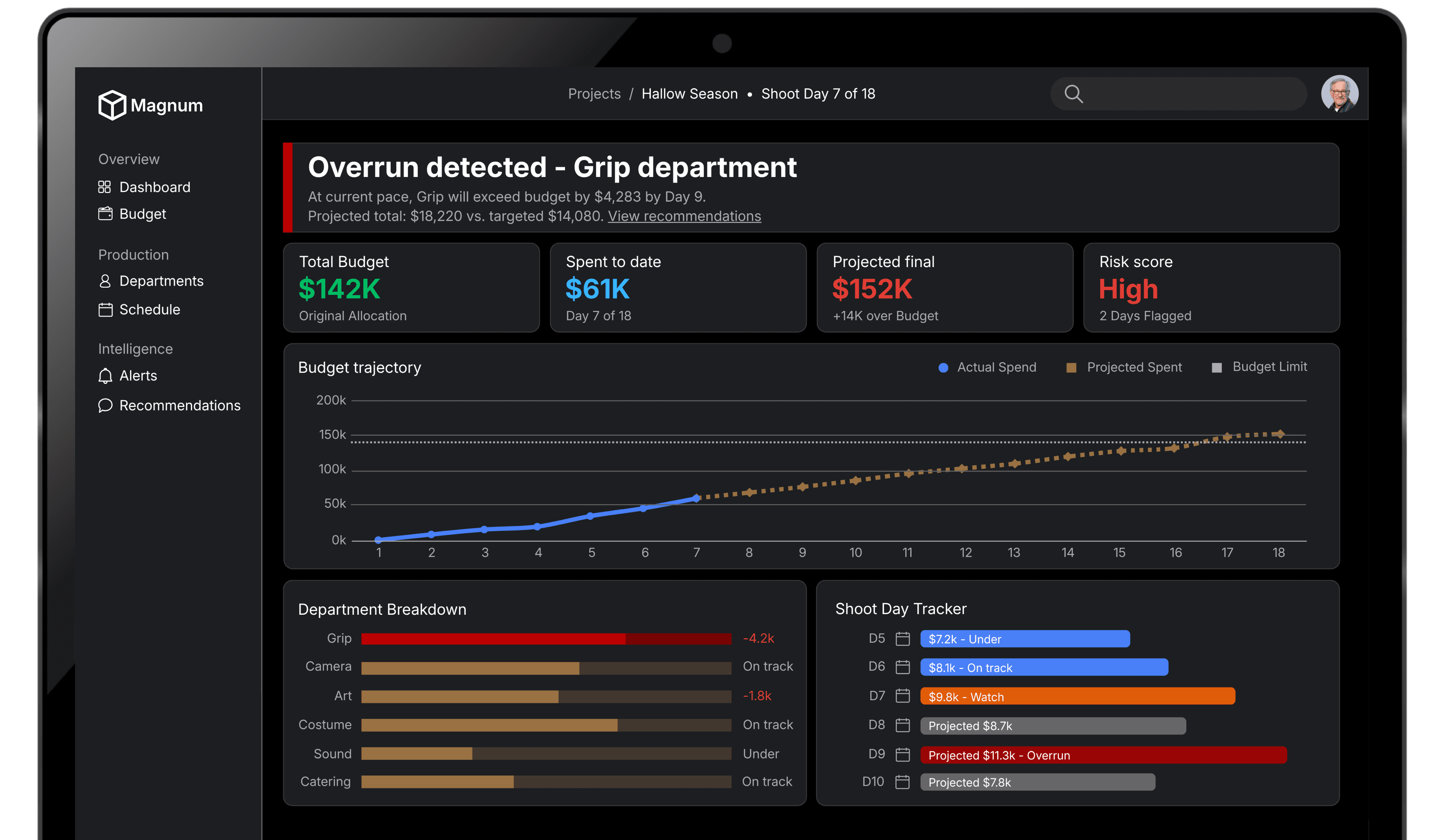 Magnum predicts overruns before they happen — and tells you exactly what to cut.